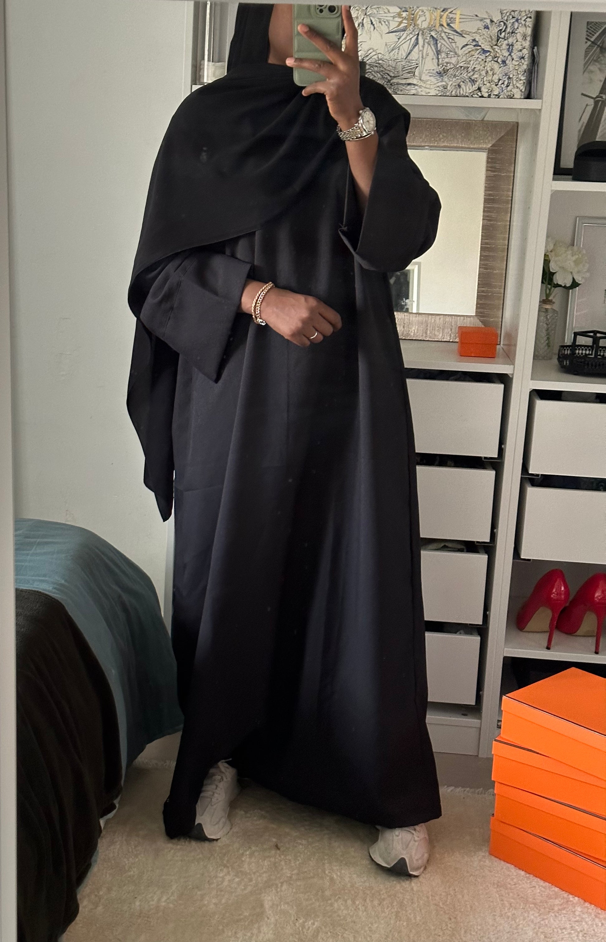 Un basique que tout le monde doit avoir dans sa garde robe : la Abaya Noir toute simple et une ceinture.