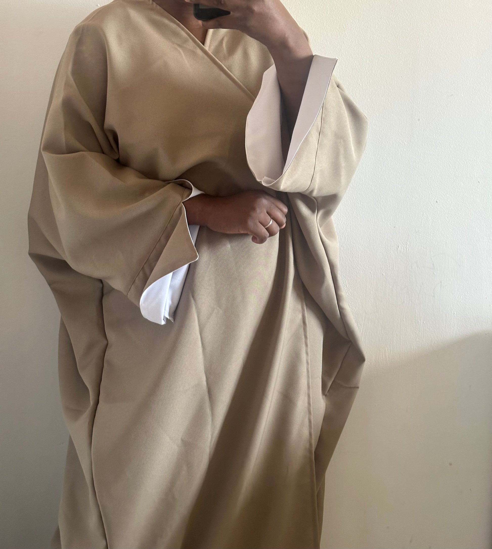 Kimono en burlington, fluide et assez léger. Et sa particularité que vous lui connaissez : les manches avec l’intérieur blanc
