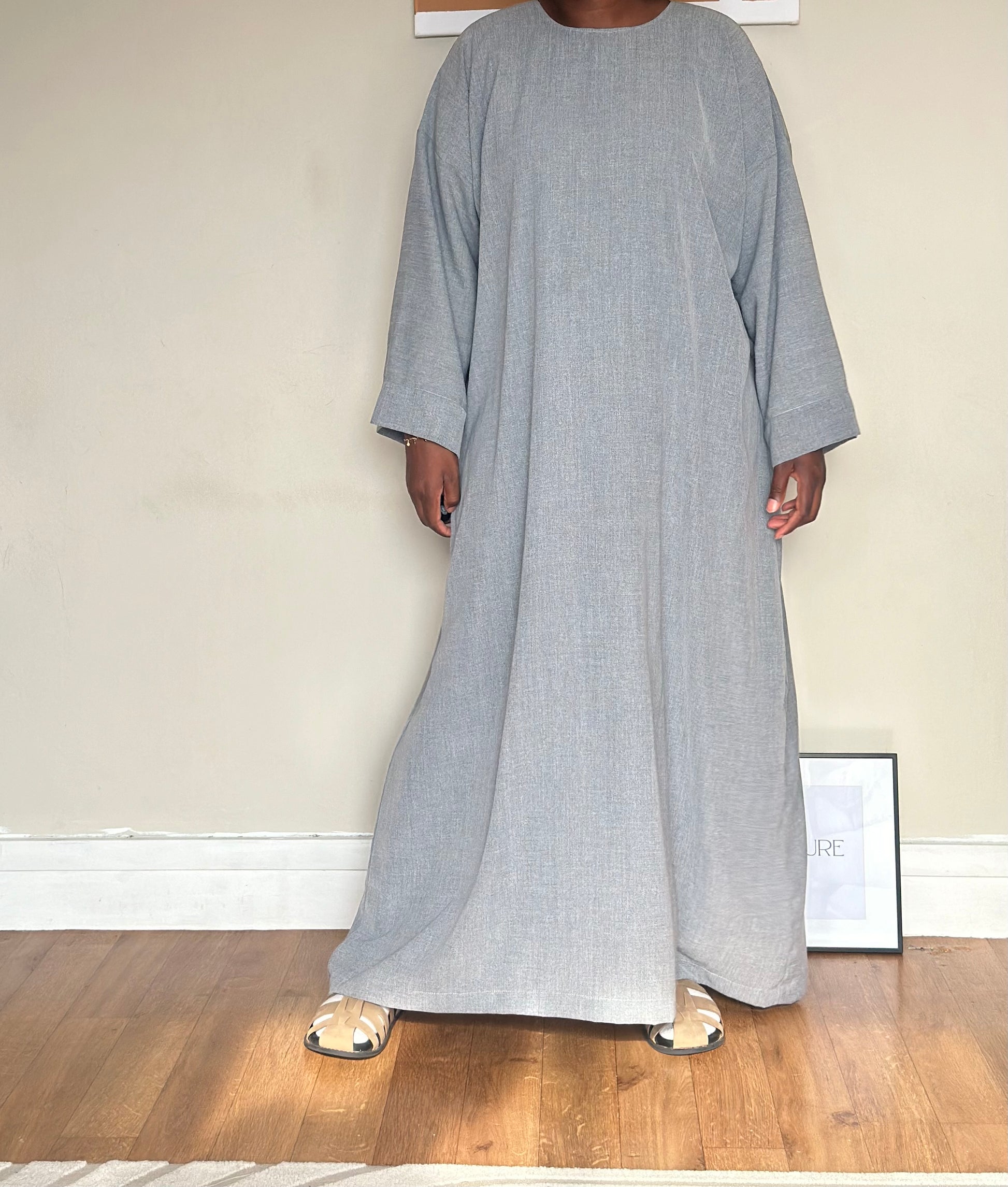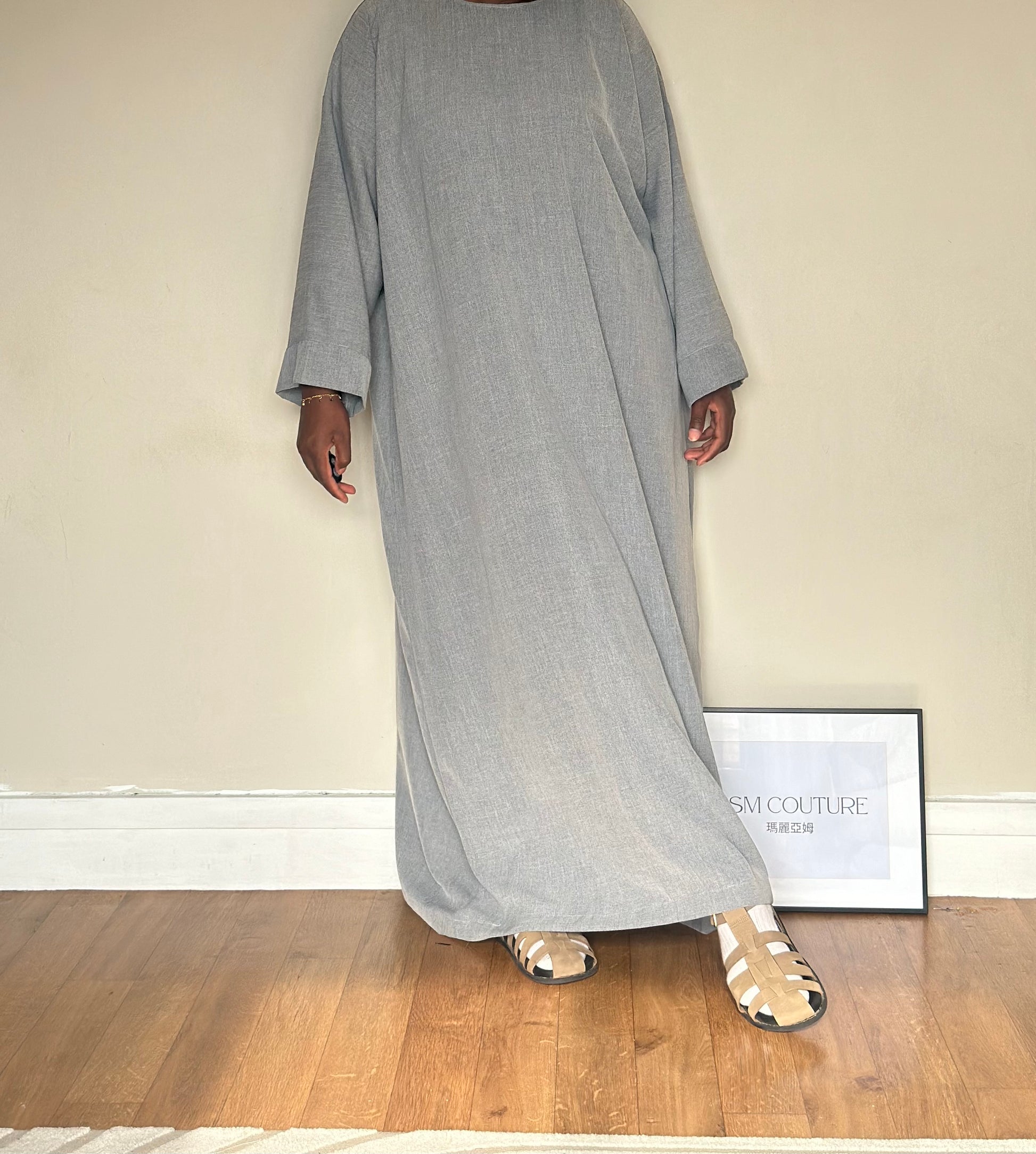 Robe oversize, droite, matière légère et fluide, couleur gris claire