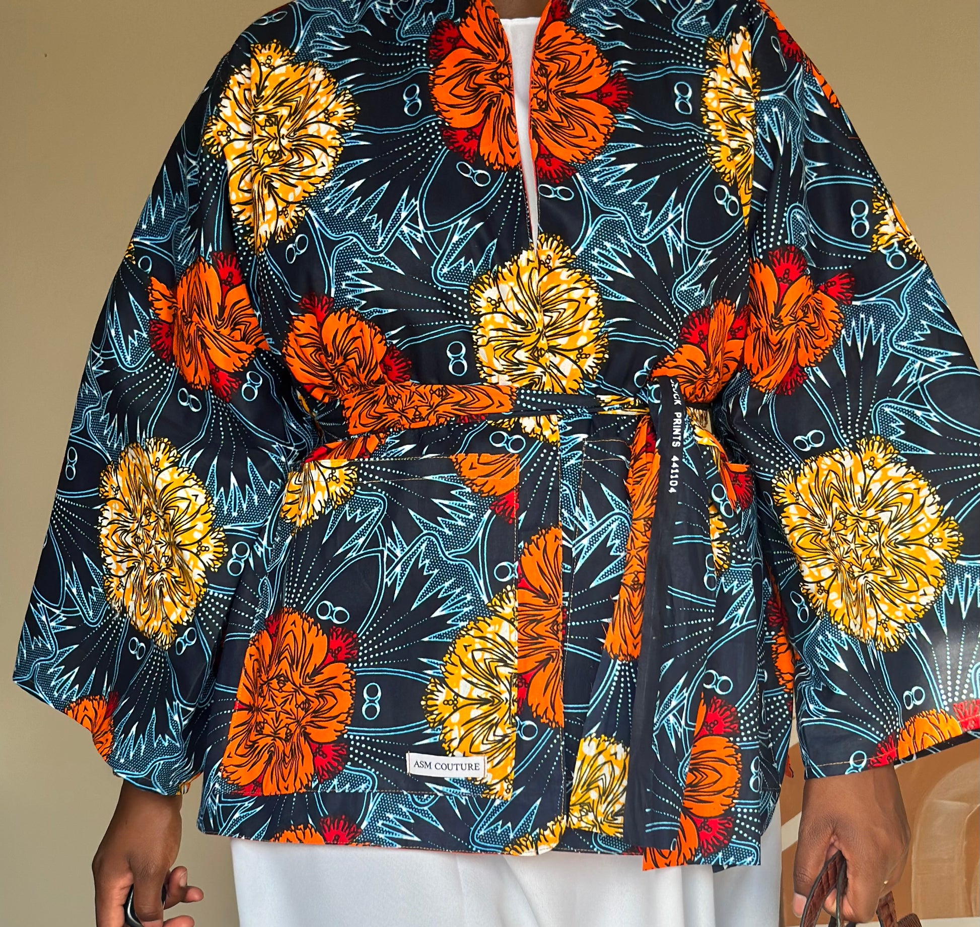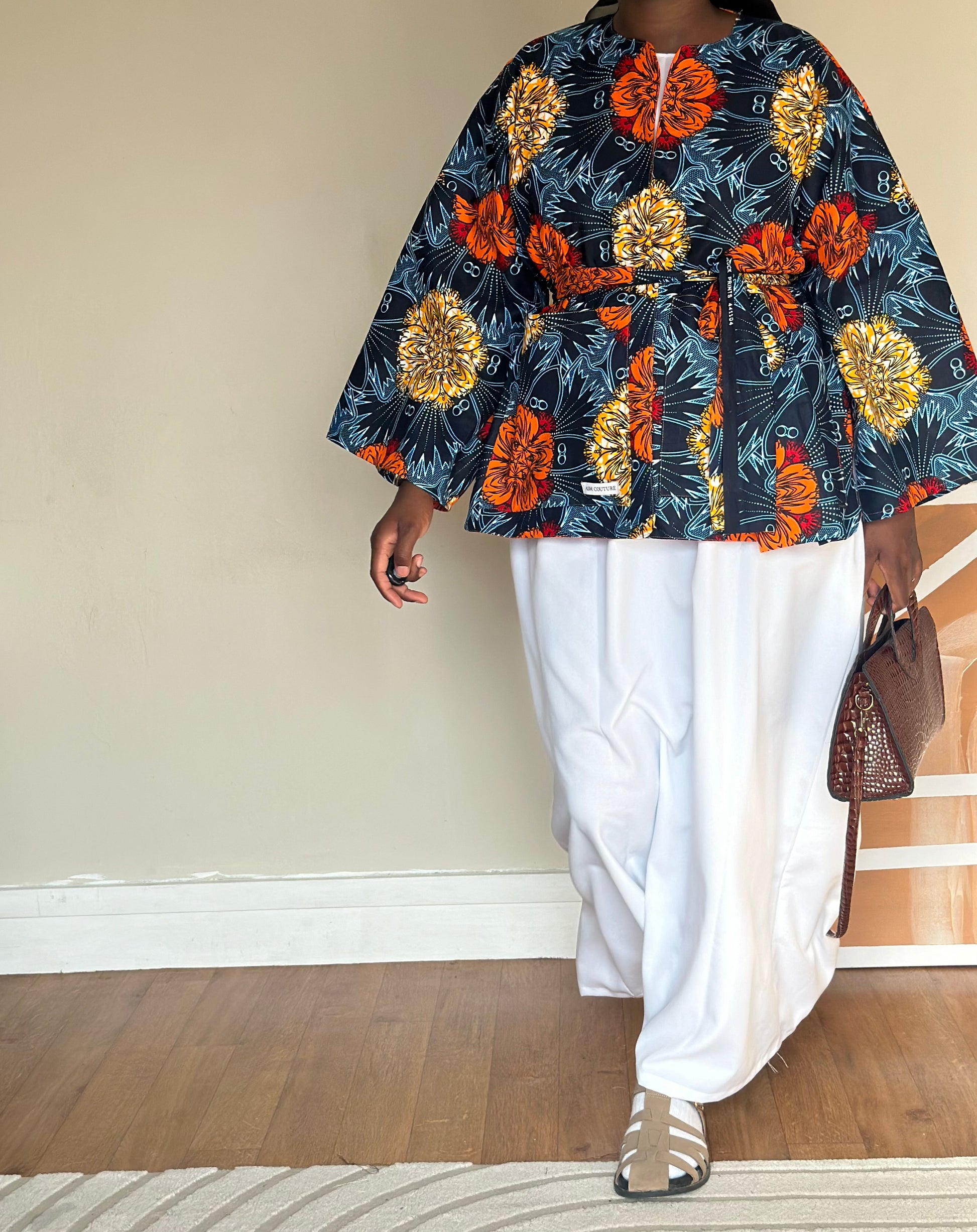 Veste en wax doublé, (plusieurs motifs disponibles) poches sur les deux côté, fentes sur les côtés également. Matière rigide mais légère. Inscrivez le numéro # du motifs choisis dans le carré sous le produit